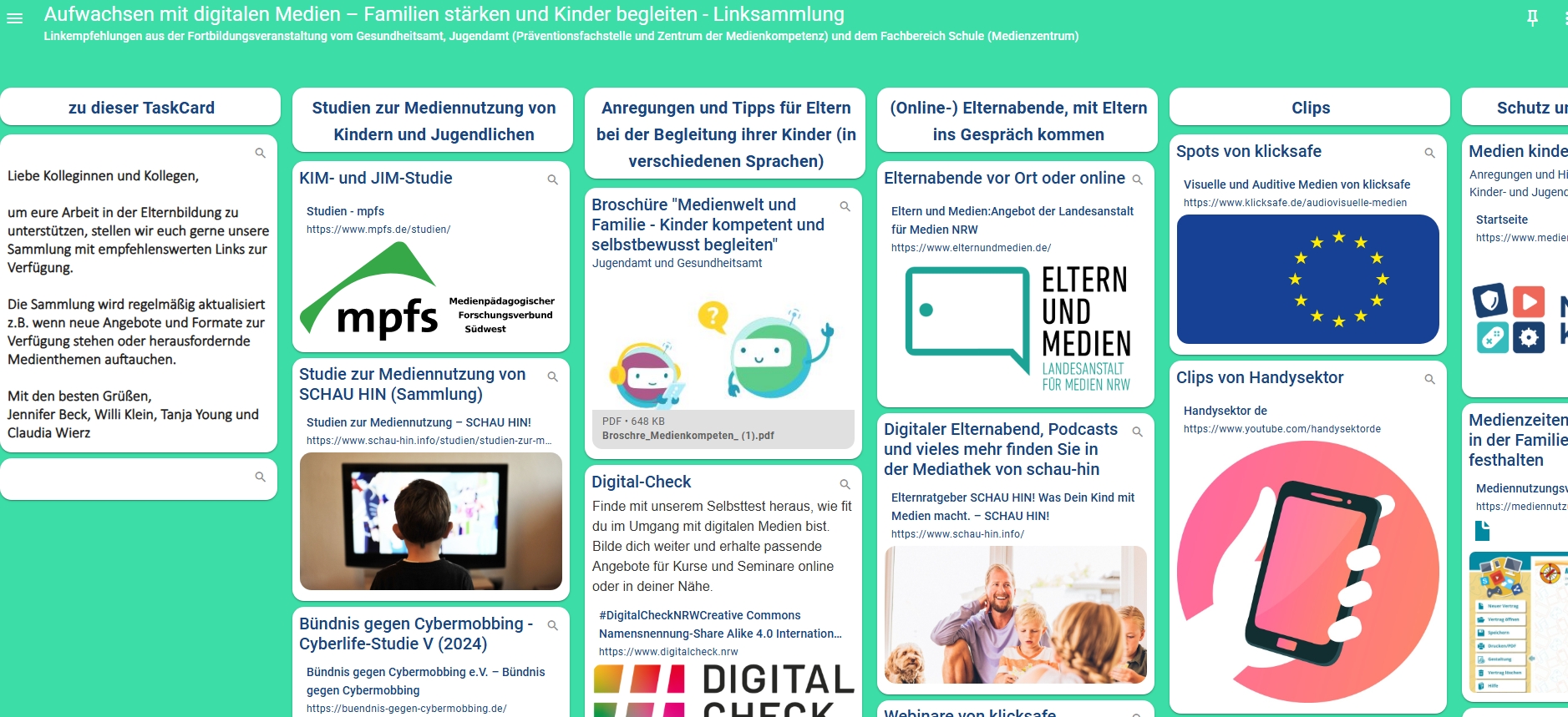 Für ein Elterncafé oder einen Elternabend rund um das Aufwachsen mit digitalen Medien stellt das Medienzentrum eine TaskCard mit Links zur Verfügung.