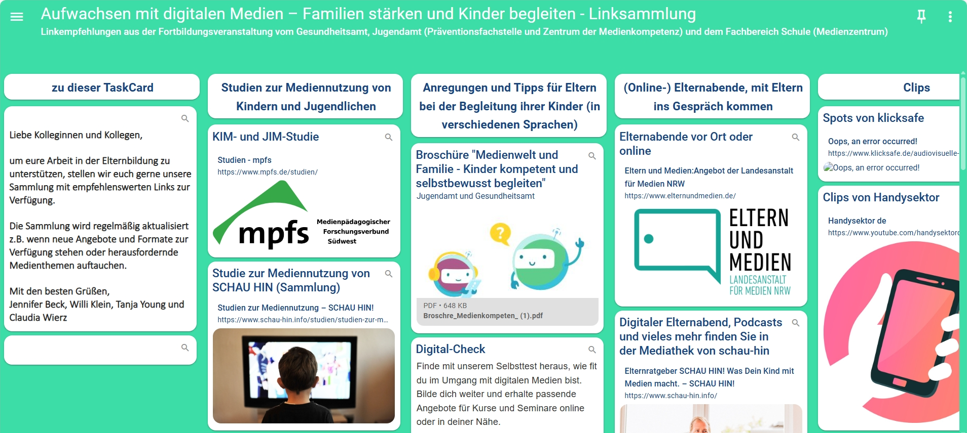 Für ein Elterncafé oder einen Elternabend rund um das Aufwachsen mit digitalen Medien stellt das Medienzentrum eine TaskCard mit Links zur Verfügung.